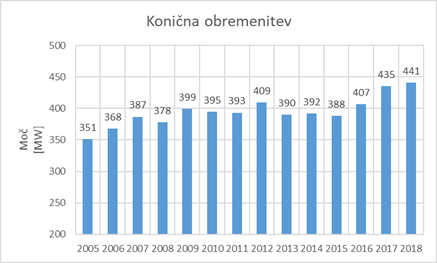 V letu 2018 se je ponovno povečala konična moč, ki je z 441 MW dosegla najvišjo vrednost do sedaj. Od leta 2015 konična moč narašča vsako leto zapored, že dve leti zapored pa v času izjemno nizkih temperatur dosega rekordno vrednost. Konična moč je pomembna zaradi dimenzioniranja omrežja in njena intenzivna rast narekuje tudi ojačitve omrežja.